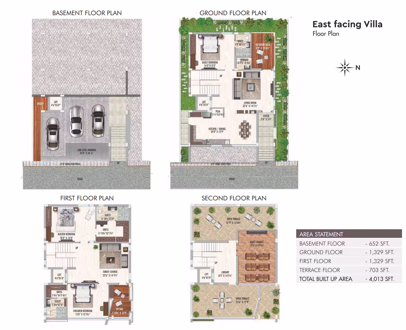 Triplex homes ranging from 4013 to 6422 sq ft, each with a Johnson-Hitachi lift.