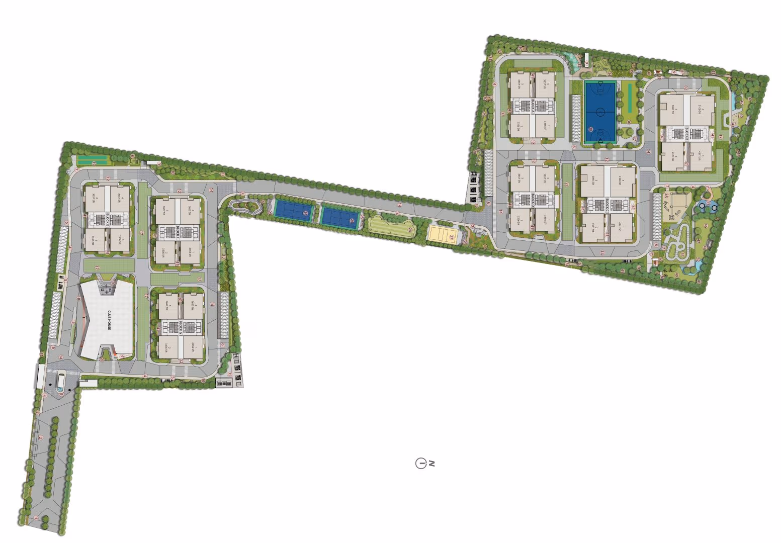 Sprawling residential enclave with abundant open spaces & lush greenery.