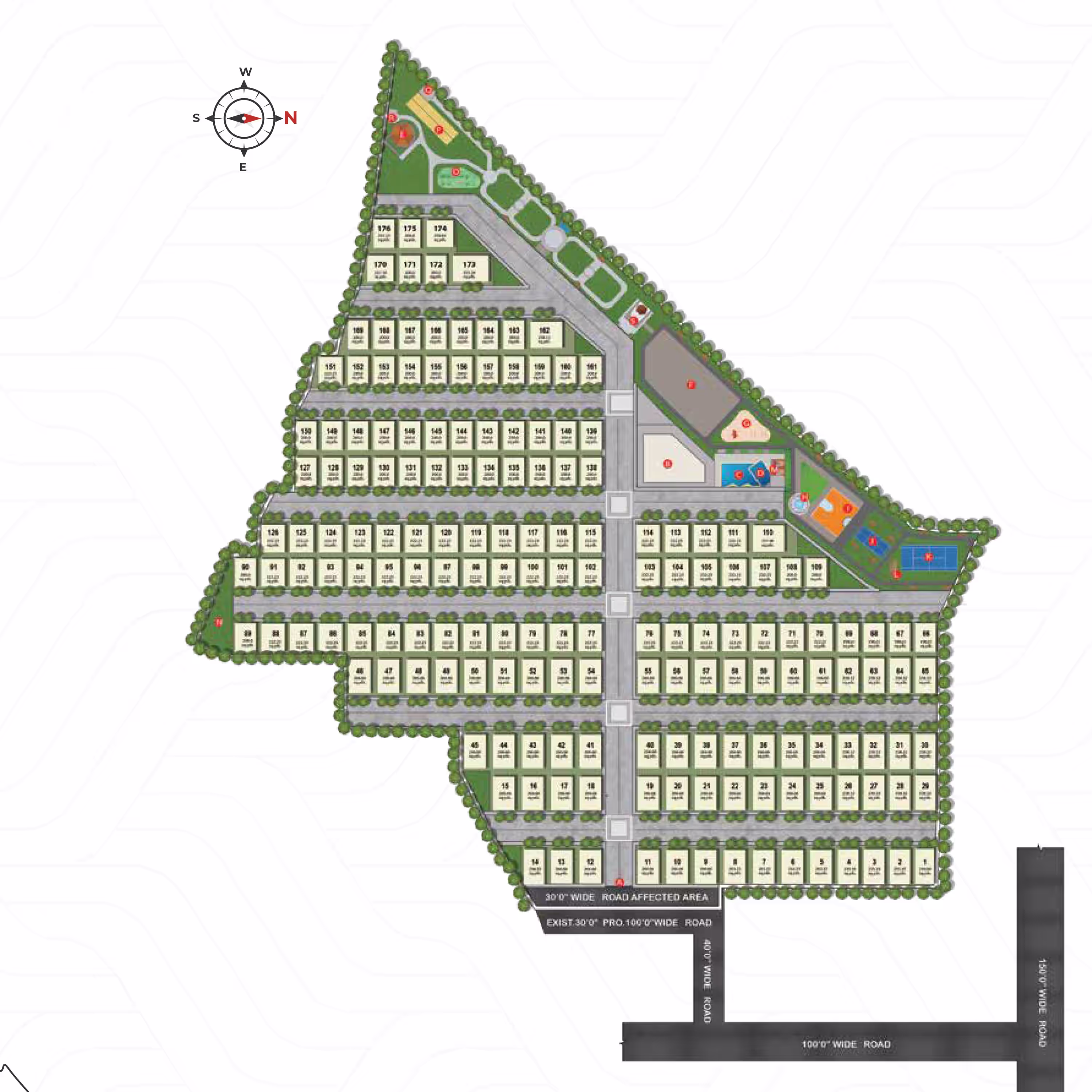 Includes swimming pool, tennis & basketball courts, jogging/cycling tracks and play areas.