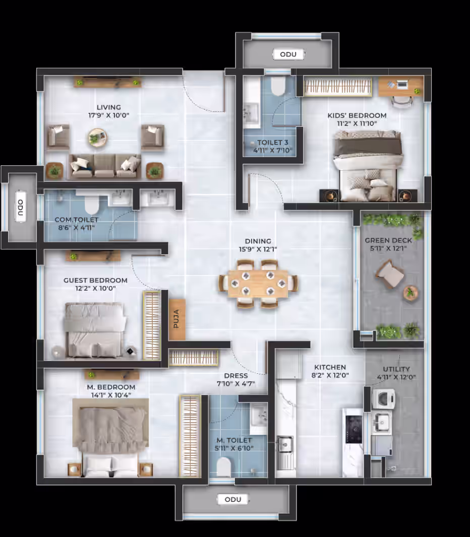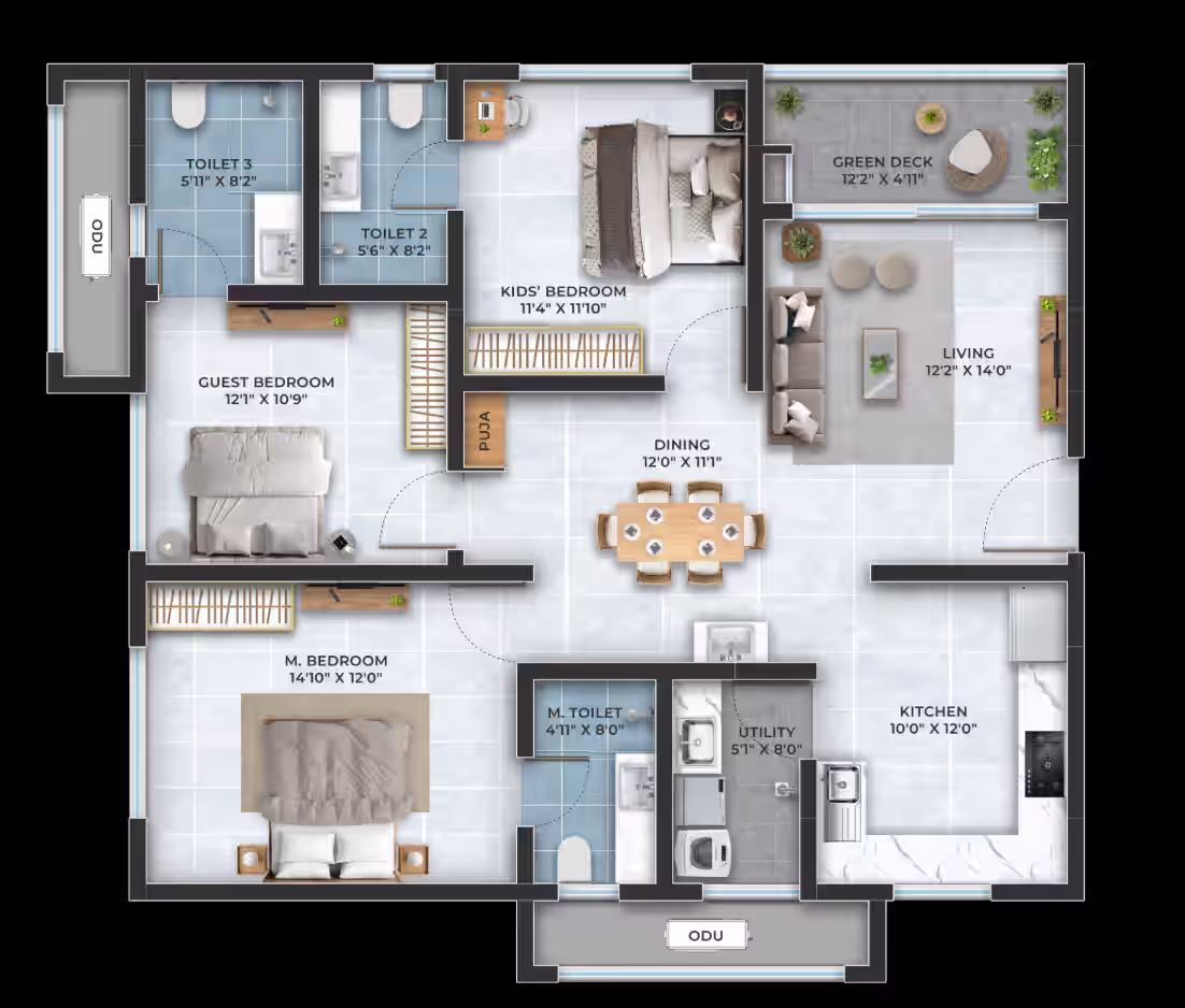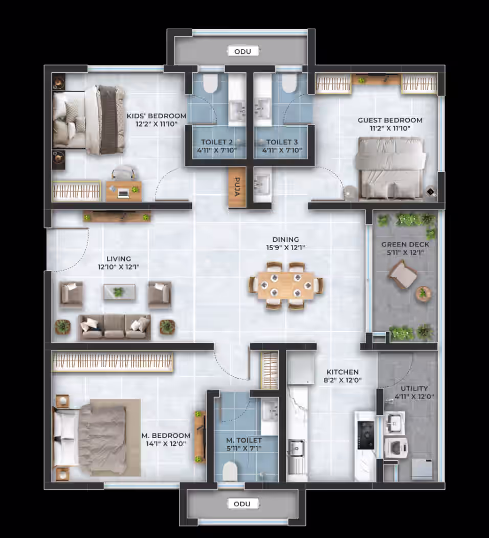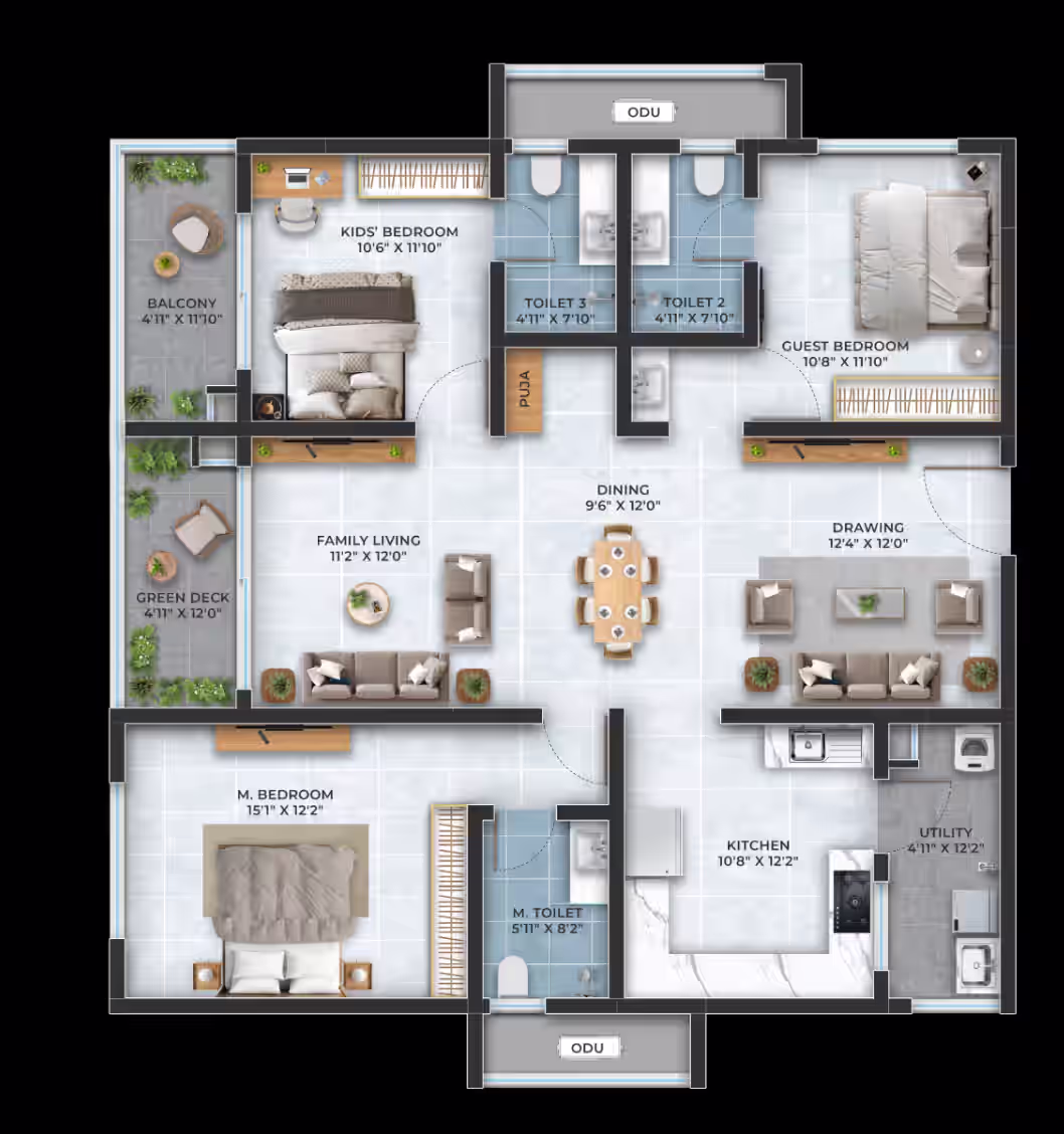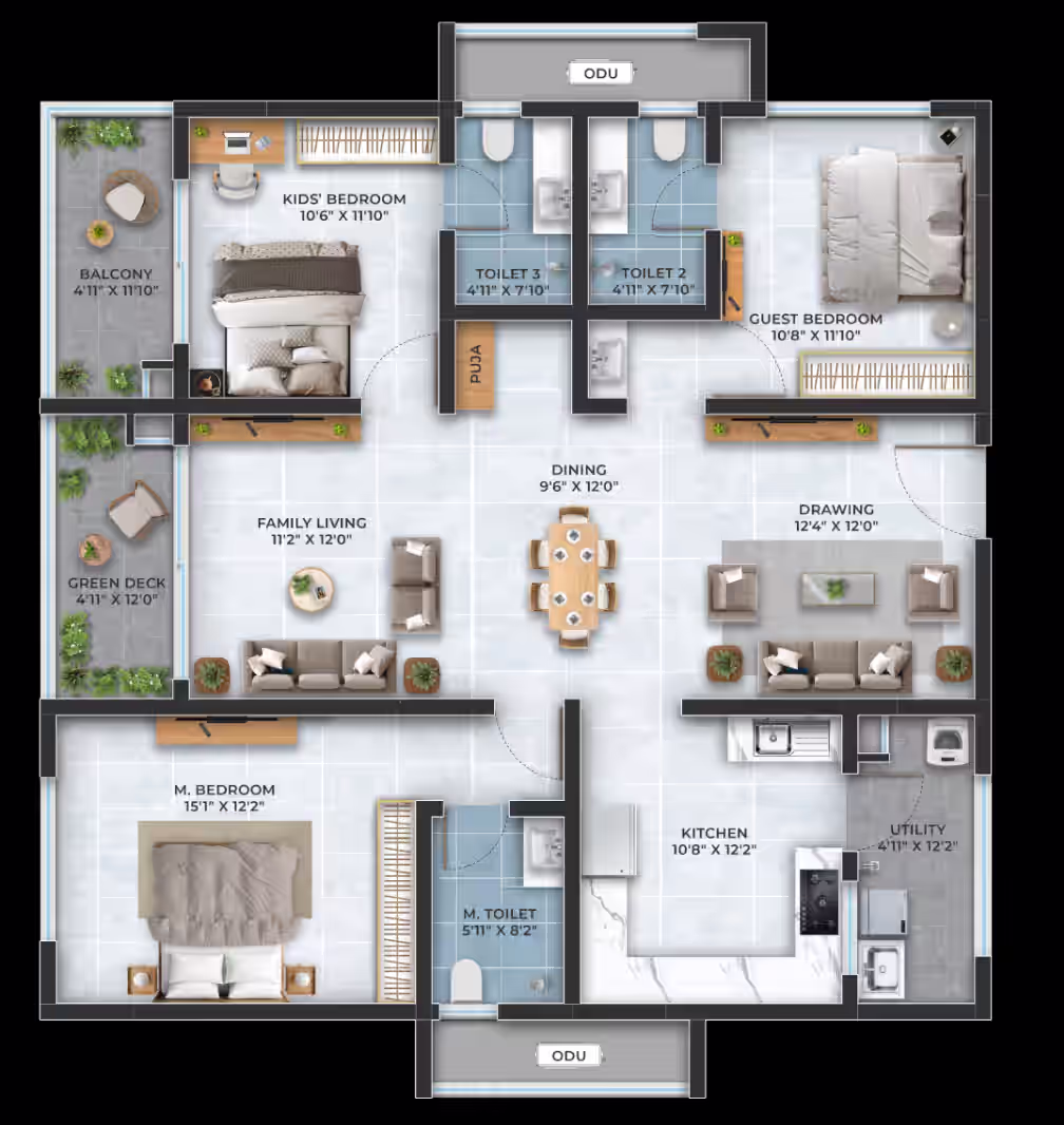 3, 3.5, 4 BHK