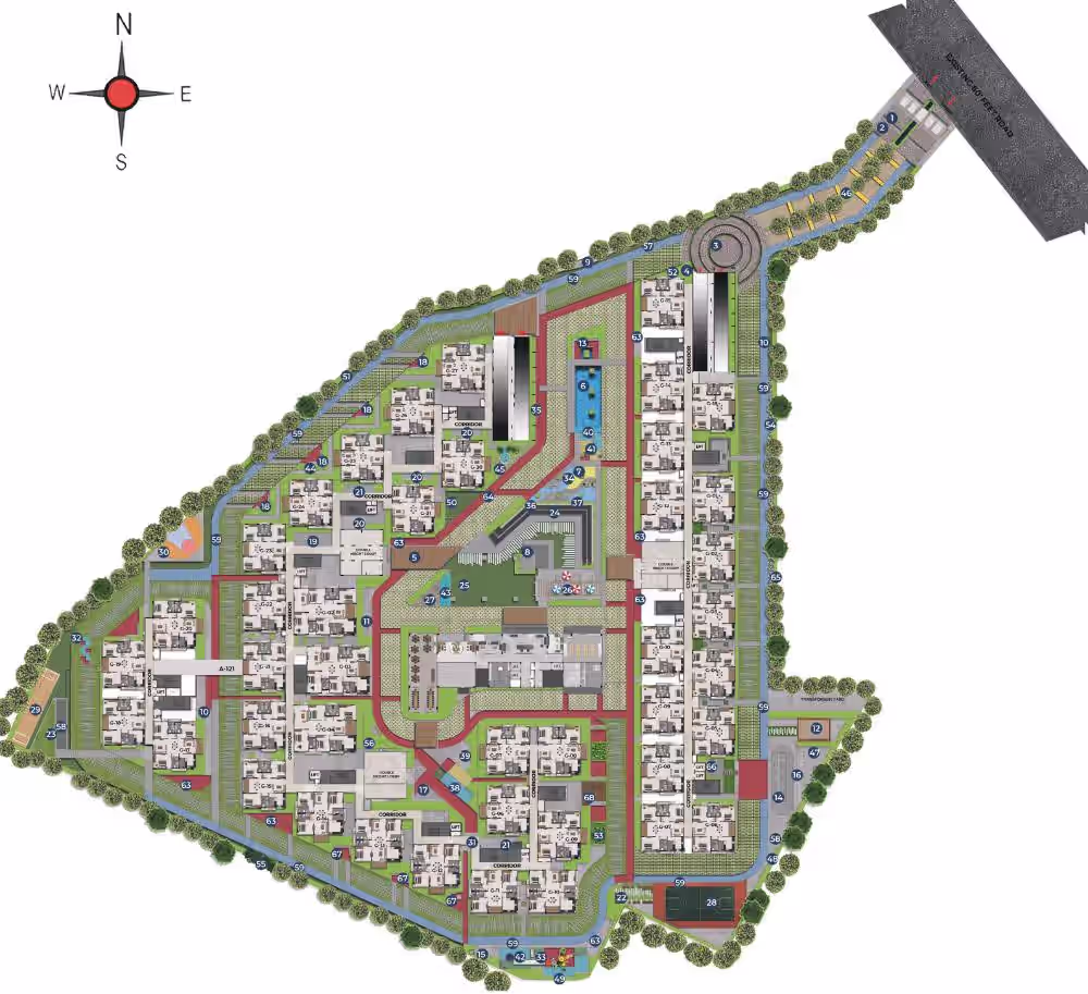 Residential enclave with lush open spaces & greenery.
