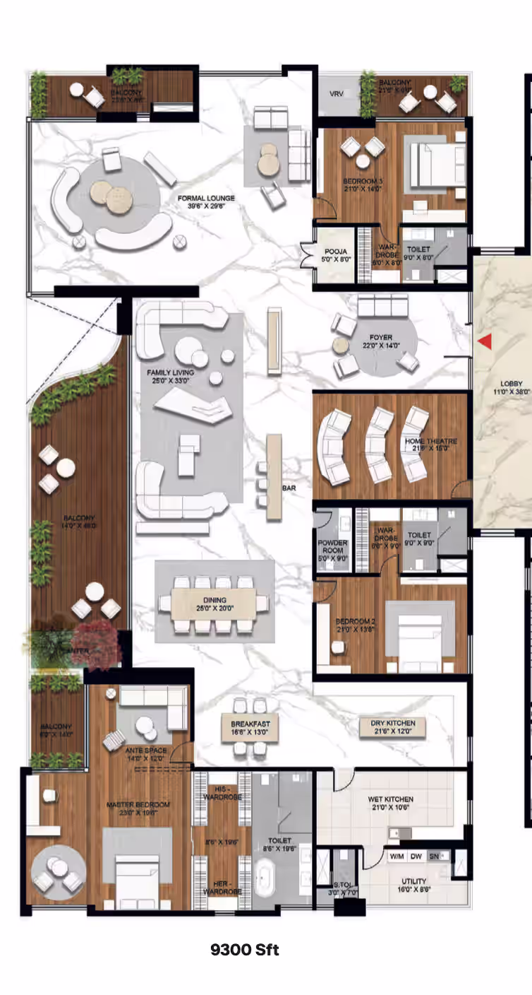 Ultra-Spacious Apartments: 9300 & 7300 SQ FT
