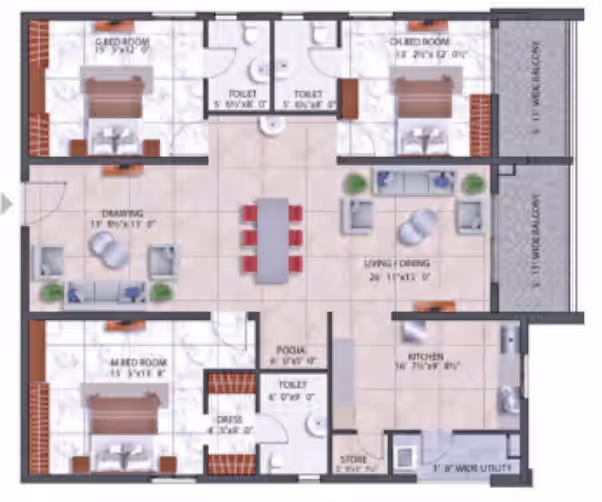 3, 4 BHK