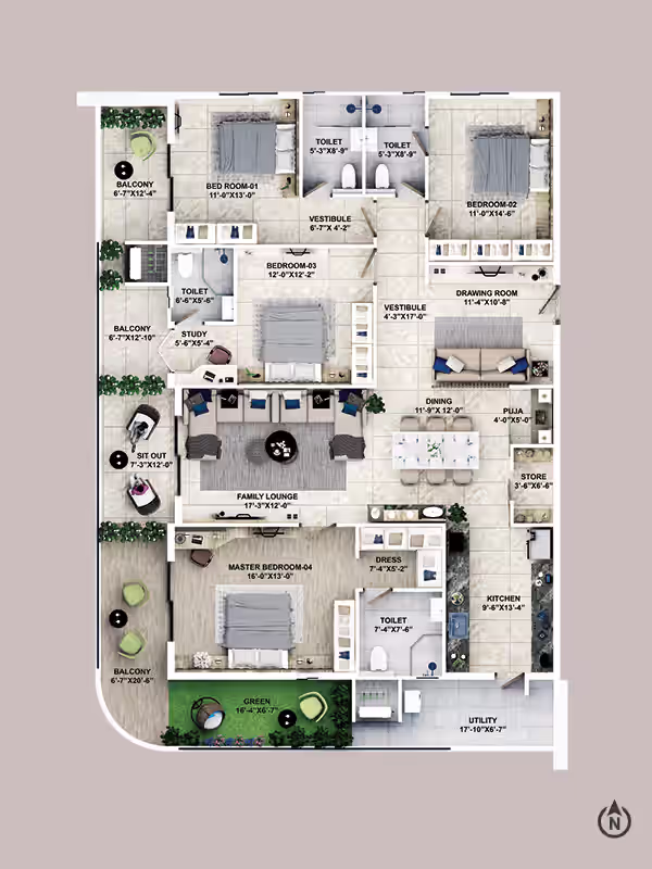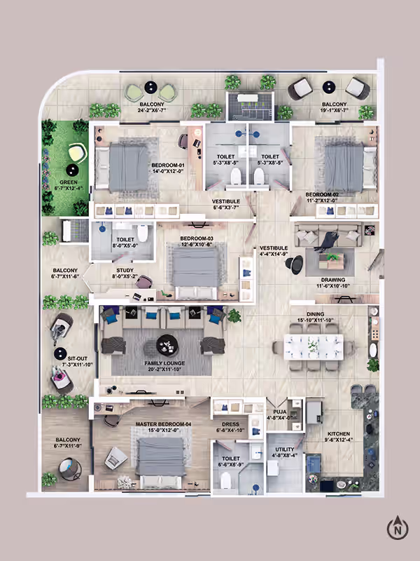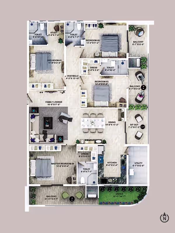 4BHK Apartment of 3042 SqFt