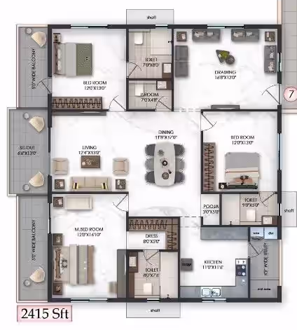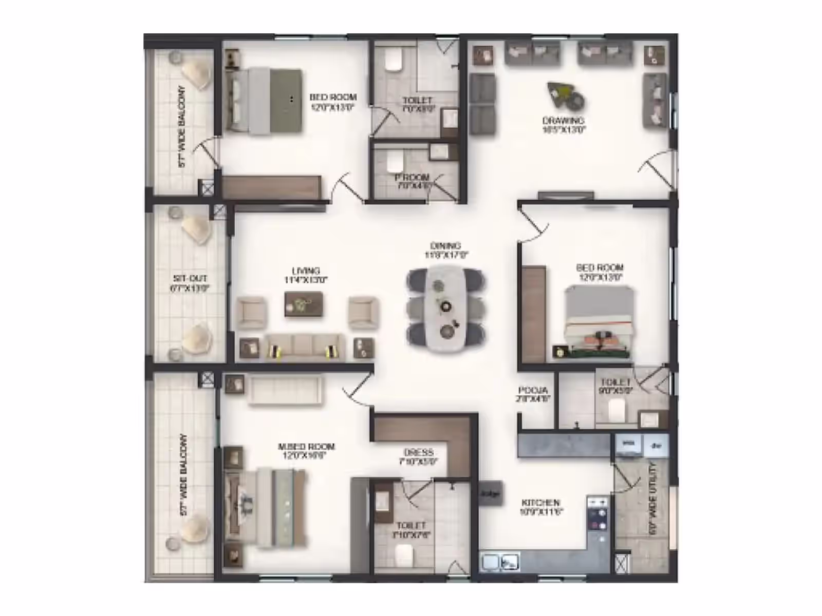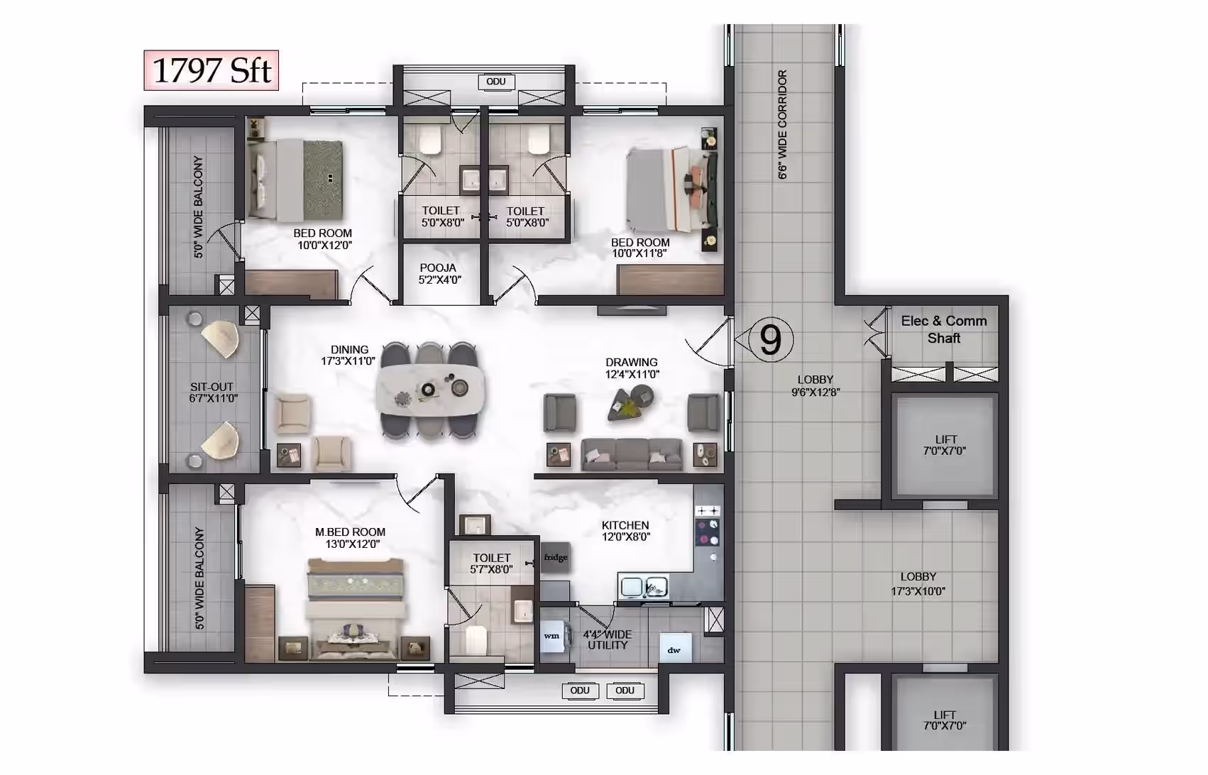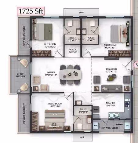 Premium fittings, vitrified tiles, UPVC windows and robust RCC structure offer long-lasting quality.