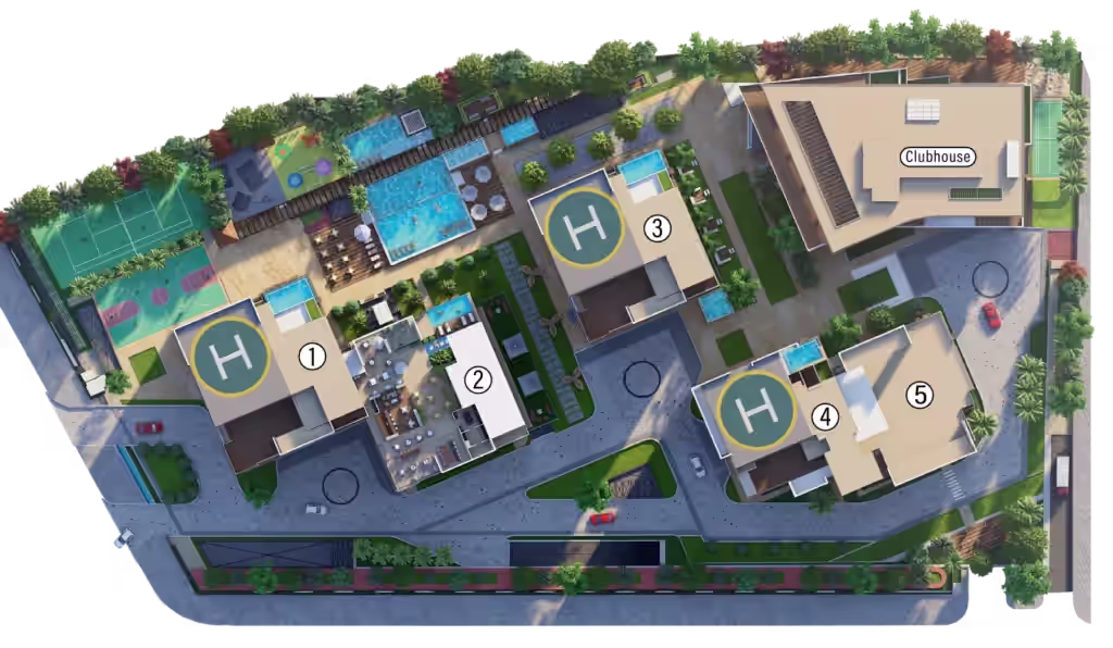 World-class lifestyle hub with fitness, spa, yoga zones, multi-purpose halls, fine dining & more.