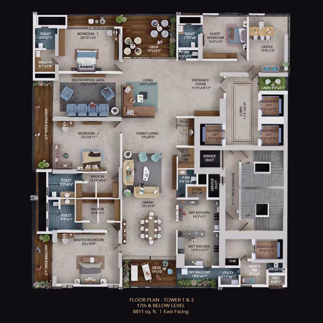 One luxury home per floor in select towers for unmatched privacy and sky views.