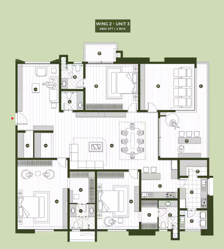 Over 85% landscaped open spaces, lush gardens, and dedicated Miyawaki forest walks.